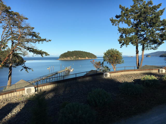 Log cabin on Miners Bay Beach, Mayne Island, BC